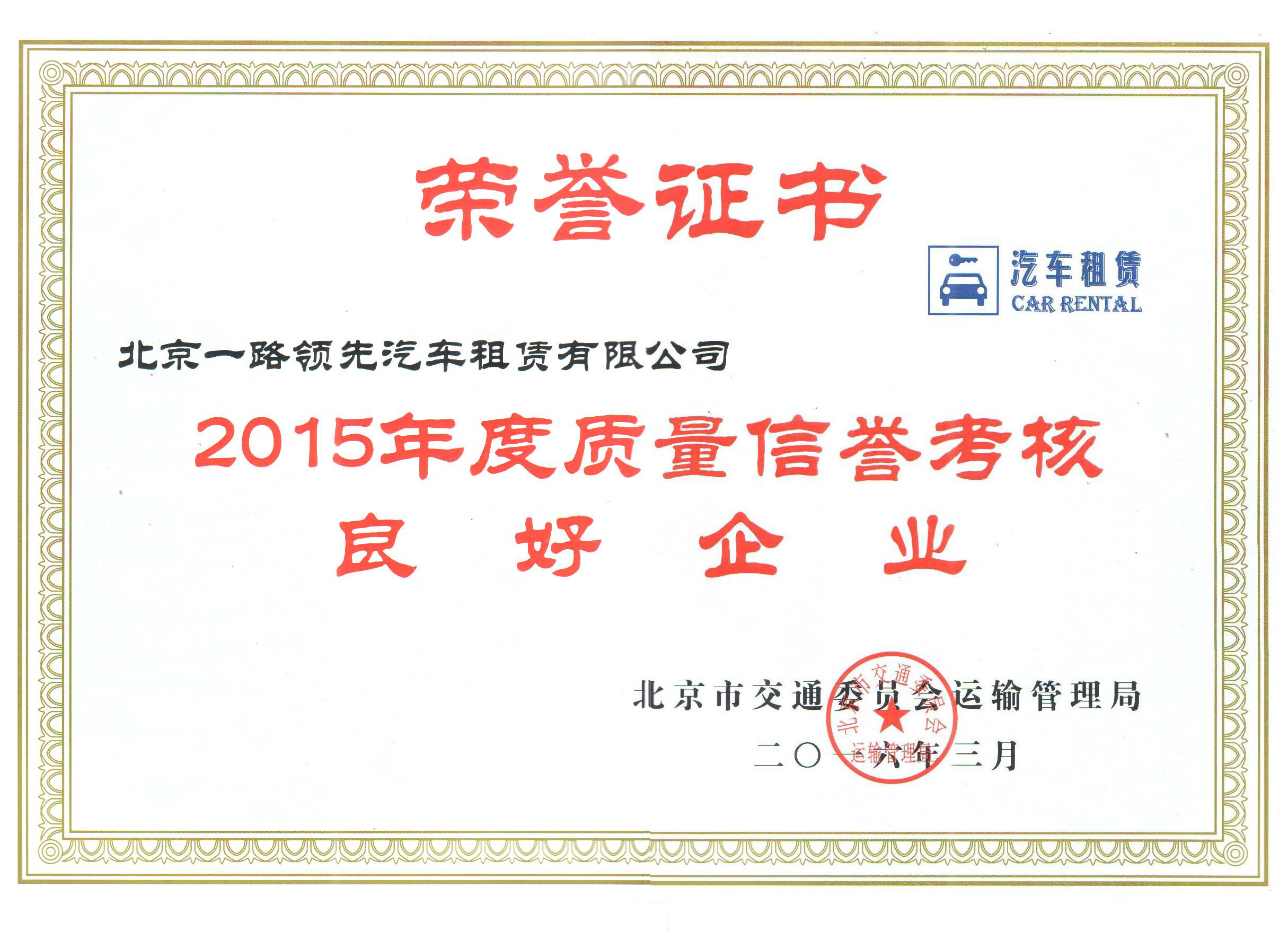 2016年04月08日熱烈慶祝北京一路領先汽車租賃有限公司榮獲優秀良好企業榮譽
