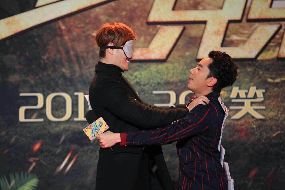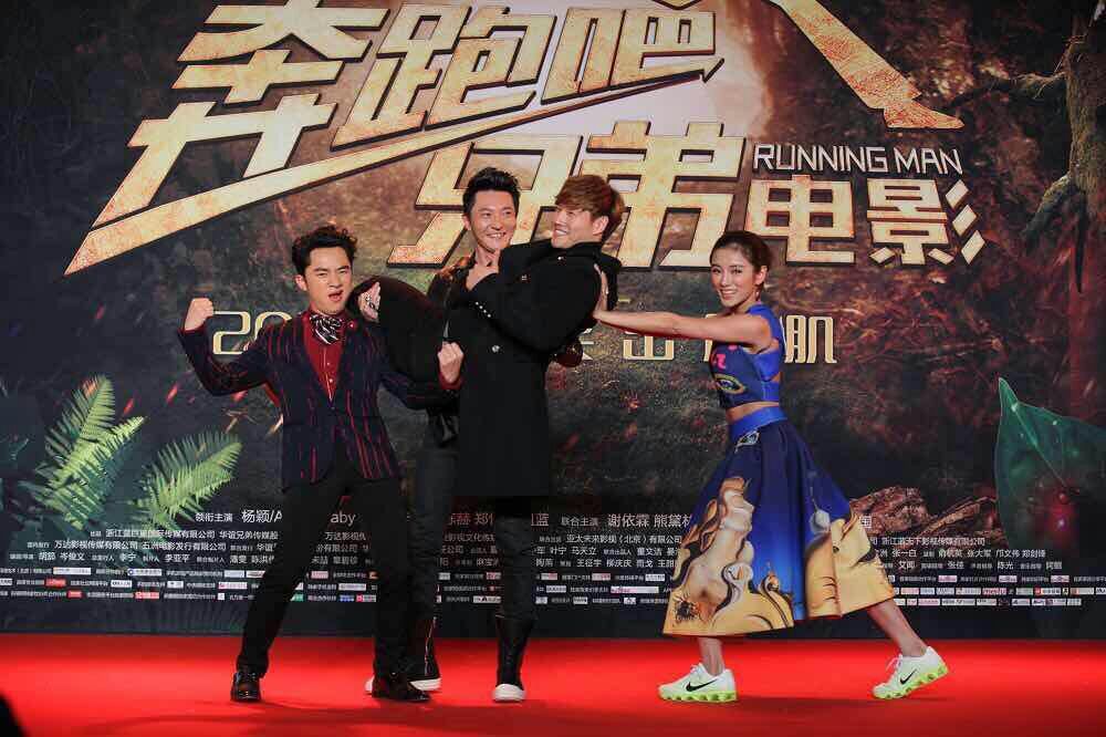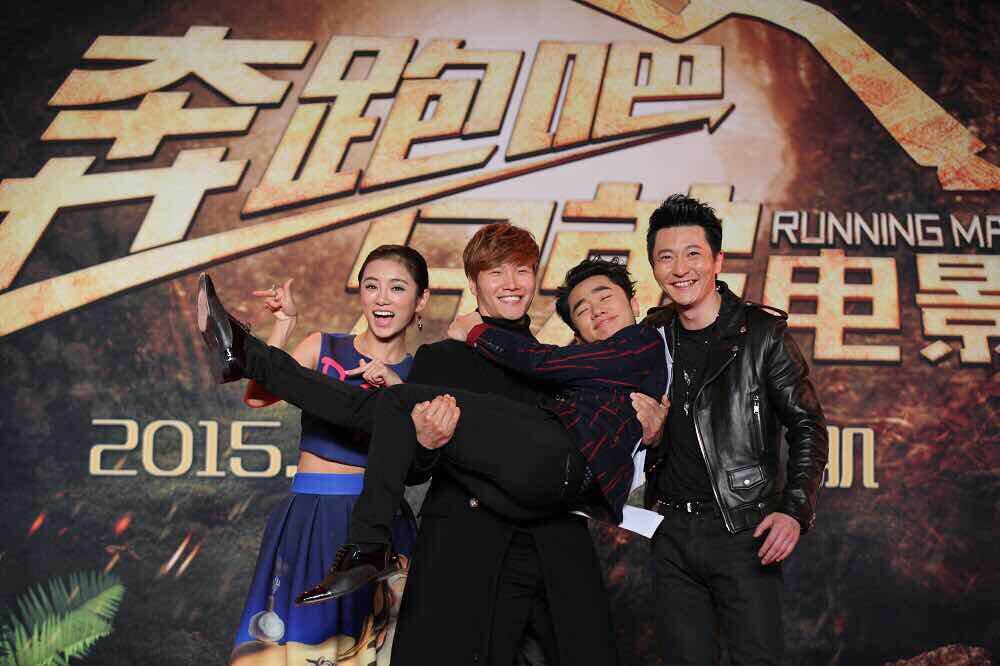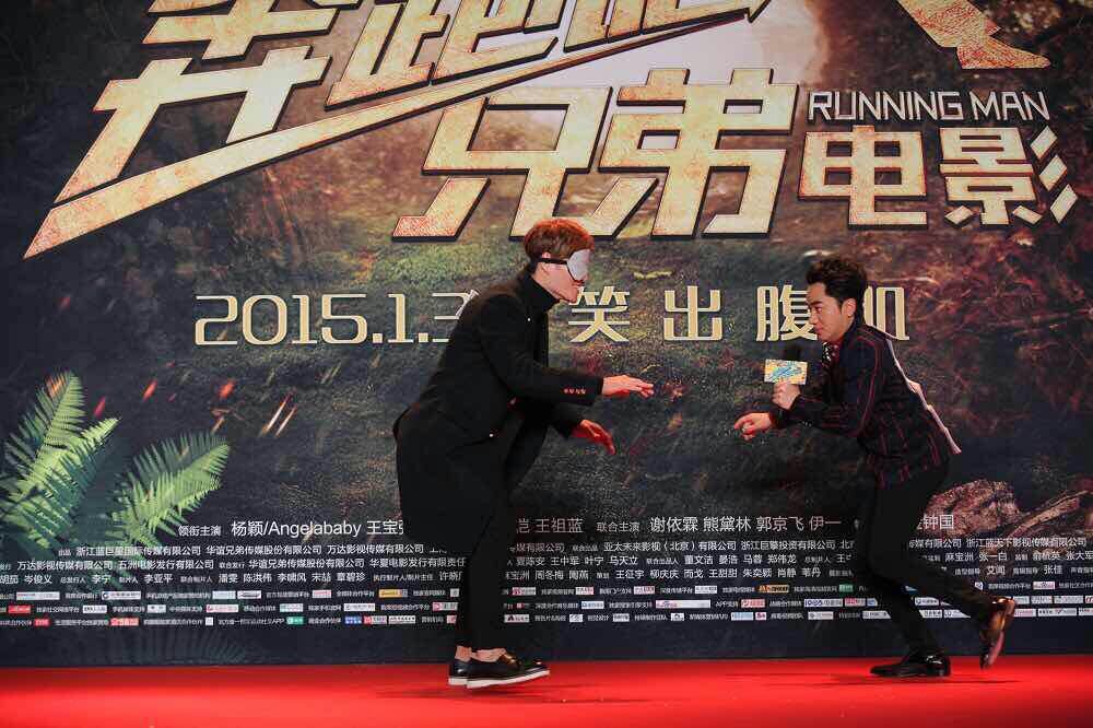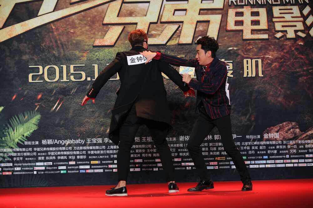 大電影“奔跑吧,兄弟”宣傳活動(dòng)現(xiàn)場(chǎng),金鐘國(guó)和王祖藍(lán)。(北京一路領(lǐng)先汽車(chē)租賃公司)圖