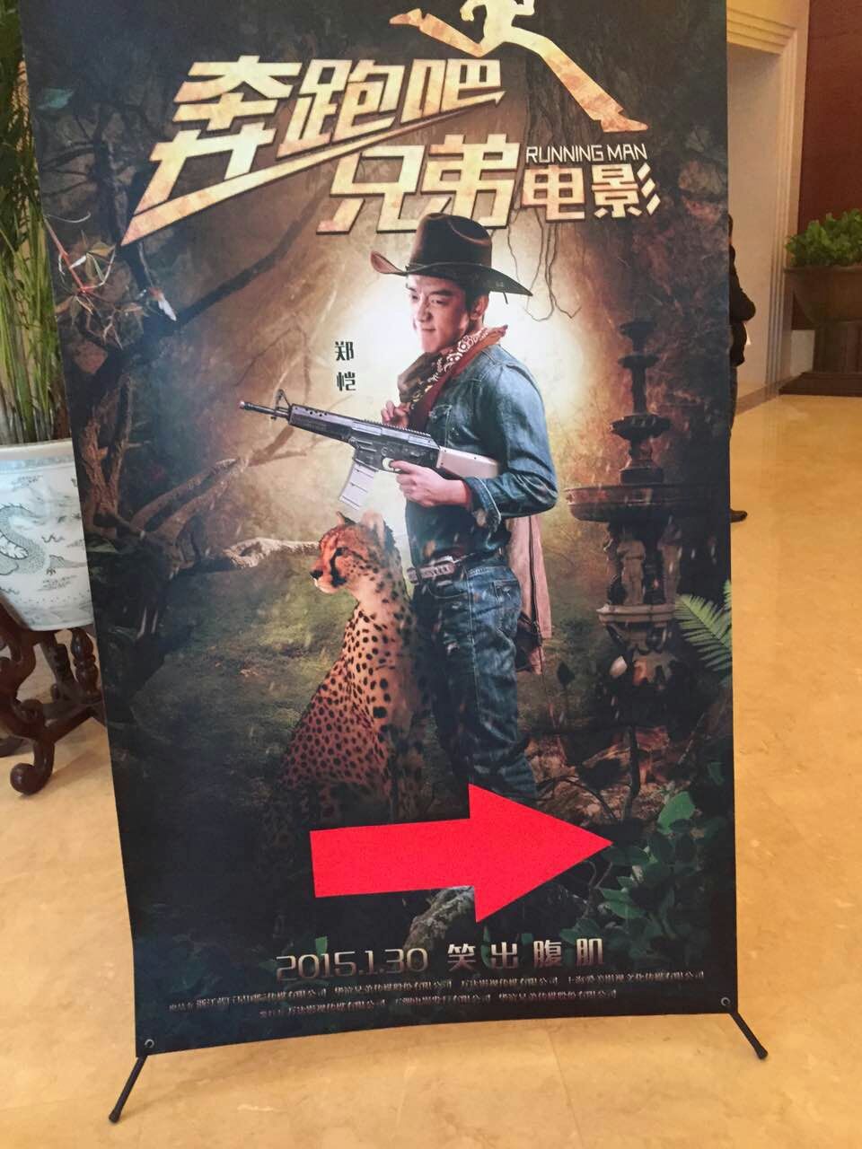 大電影“奔跑吧,兄弟”宣傳活動(dòng)現(xiàn)場(chǎng),鄭凱海報(bào)。(北京一路領(lǐng)先汽車(chē)租賃公司)圖